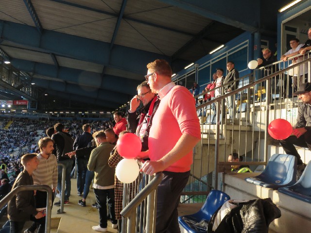 Luftballon/Schirm/Fahnen-Choreo auf Stuttgarter Seite und dann eine
